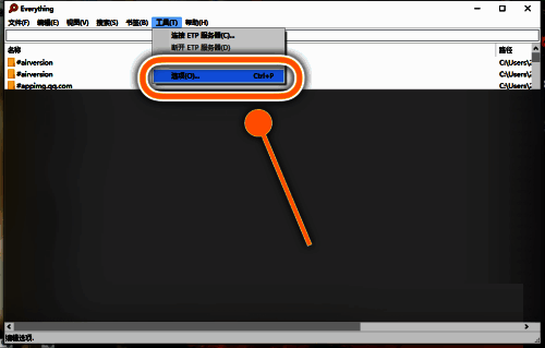 第一步:在“Everything”主界面中,点击“工具 > 选项”列表项。
