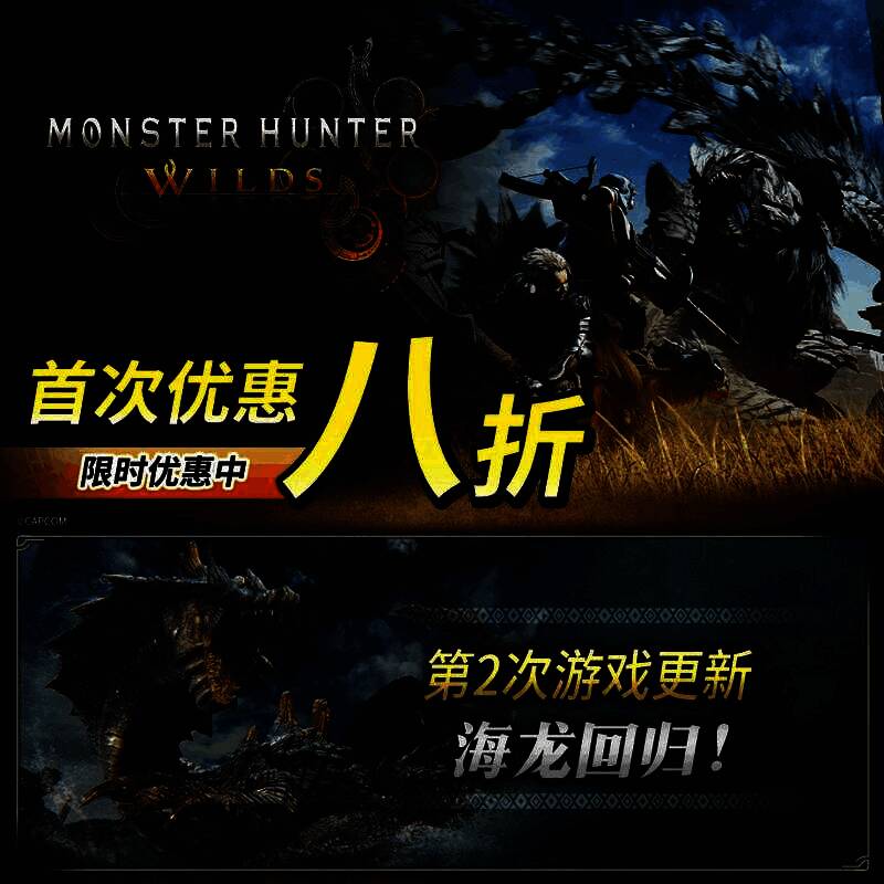 Capcom官博宣布《怪物猎人:荒野》第2次内容更新现已实装,同时开启限时特卖活动,首次促销8折。官方还在PS5和Xbox Series X|S开启了2小时试玩(需要PS Plus订阅)。