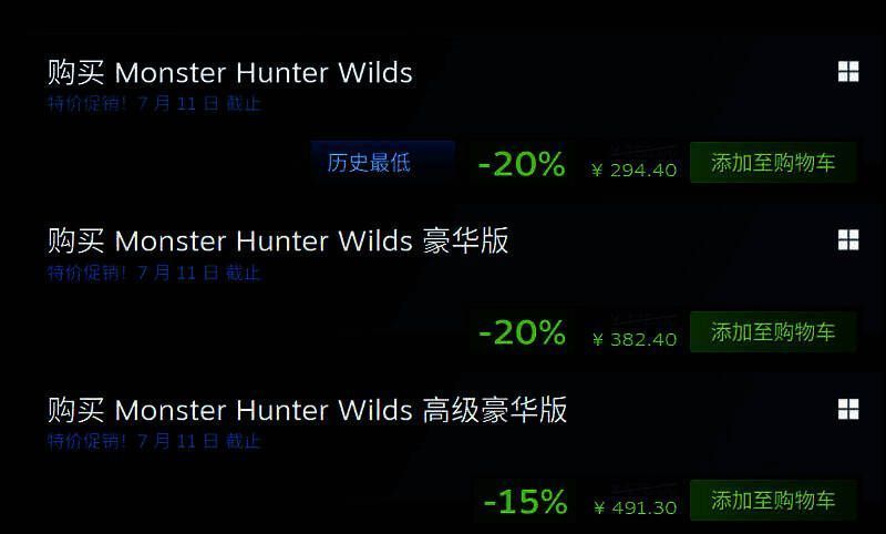 《怪物猎人:荒野》首次促销,原价368元,现价294元,为“历史最低”
