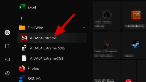 第一步:首先打开开始菜单,再点击打开【AIDA64】。