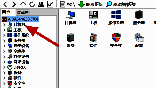 第二步:打开AIDA64应用后,再点击左侧的【计算机】。