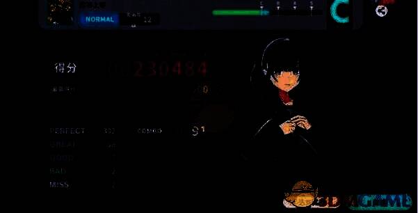 8、完成之后,将通过中的表现显示分数、分数等级与COMBO数。