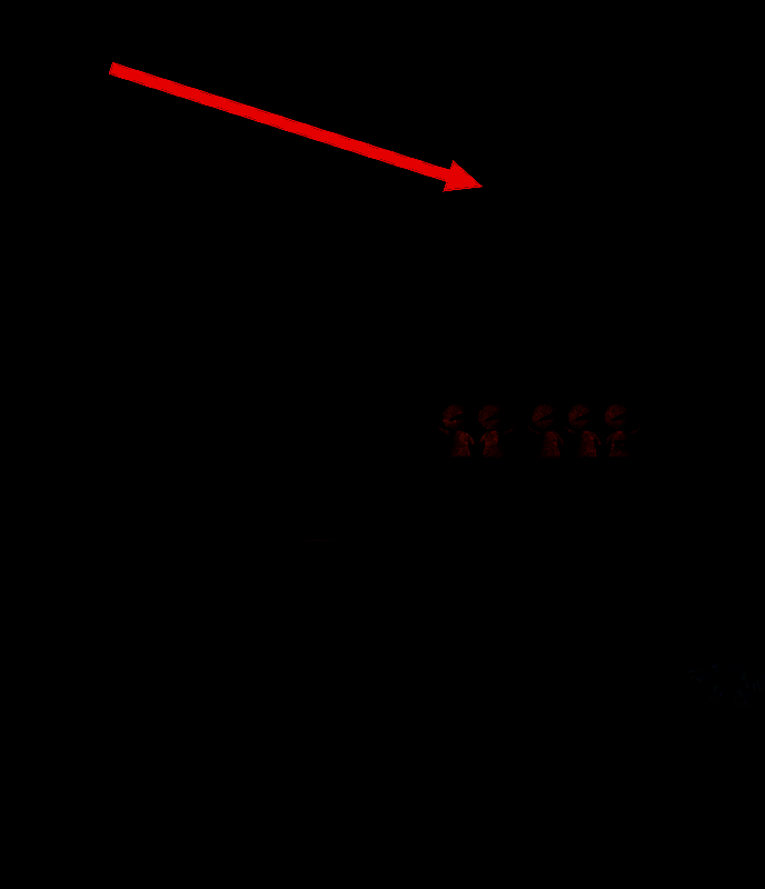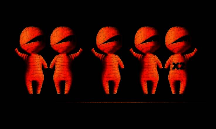 5.来到红蓝小鬼处,观察它们出刀的顺序;由于最后一下是红蓝小鬼同时出刀,红+蓝=紫,所以最后的顺序为【蓝-红-蓝-红-红-紫】