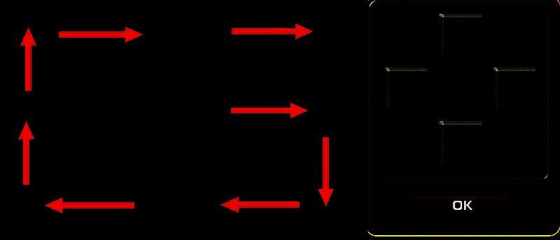 38.根据【37】中的顺序【黑-白-灰-白-灰-黑】,调整骷髅头的位置(没有放置骷髅头的地方为灰色);打开机关,获得【棒棒糖头】