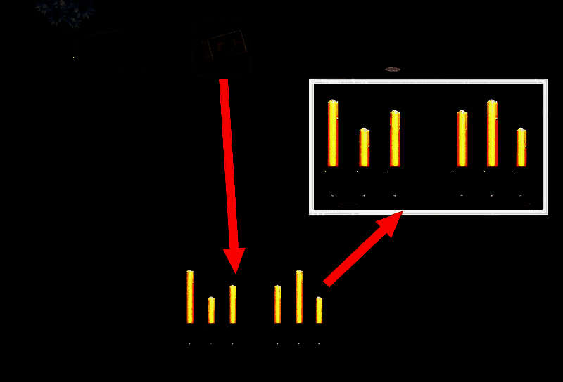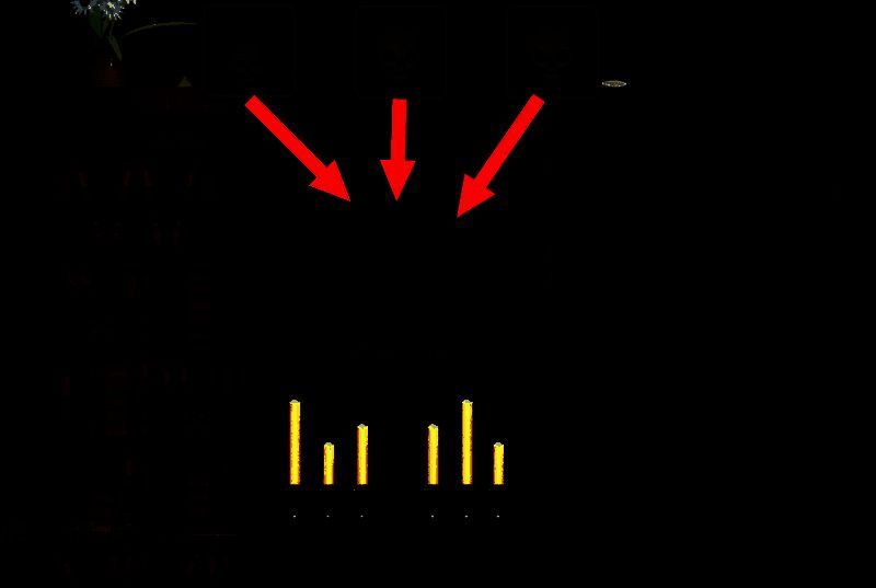 36.点击蜡烛上方的机关,将之前获取的三个【骷髅头】放入(【骷髅头1】和【骷髅头2】的获取方式详见【22】【24】),激活机关