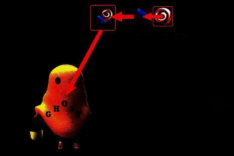 20.来到小房间,用【斧头】劈开栓住鬼魂的铁链,鬼魂会飘到电视机里;记录下电视机中鬼魂的运动轨迹