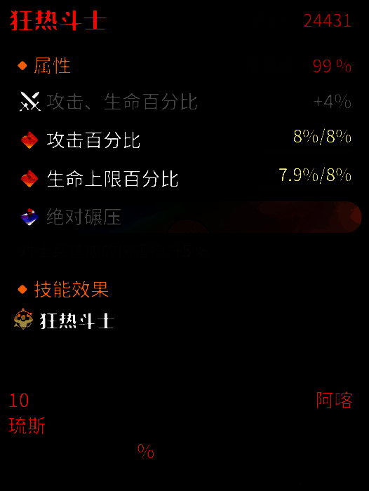 残暴之力——攻击力提升3/6/9/12/15%。