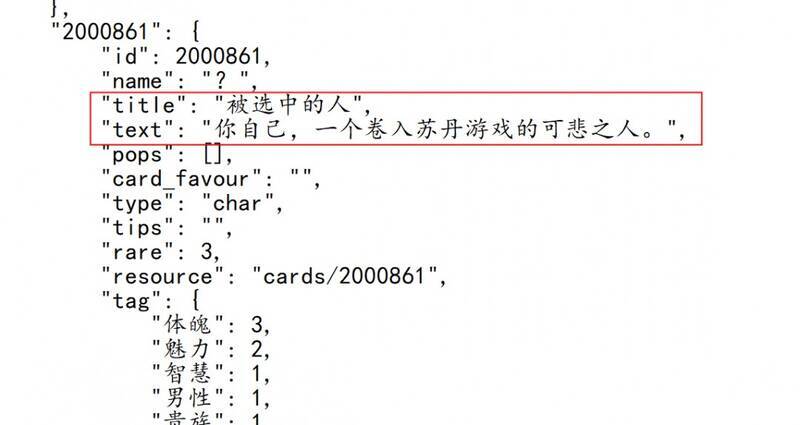 方法还是ctrl+f搜索2000861,然后将"resource": 后面的代码修改成你需要的人物立绘。