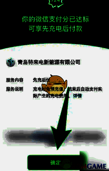3、进入微信的先充后付界面后点击【确定】即可。
