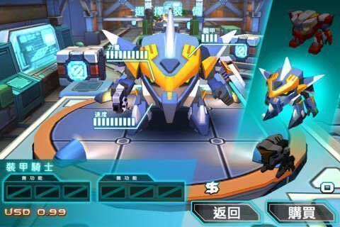 1、虚拟动画风格将玩家带入机甲世界,色彩华丽有水准。2、经典硬朗画风与可爱机甲形象带来独特游戏乐趣。3、人性化操作系统提升整体可玩性。