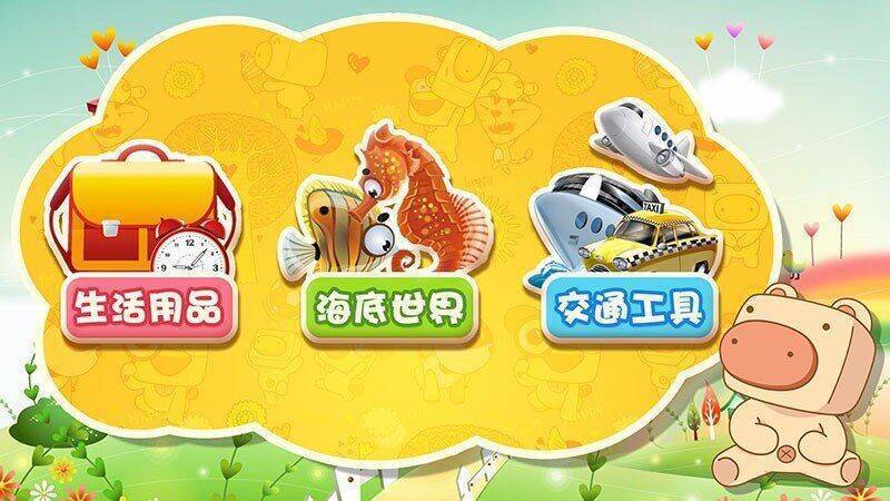 4、各分类精心挑选宝宝感兴趣的内容,以色彩亮丽且带alt属性“猪迪克认知分类内容展示”的高清实物图展示,助力宝宝认知、识字和观赏。