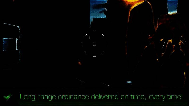 屏幕上会显示生命值、雷达和武器控制等信息。雷达在寻找最近外星人时很有用,但调转炮口耗时较长,操作起来就像使用古老的转盘式电话拨号。开火按钮使用方便,按下即可开火。玩家可在六种普通武器和两种特殊武器间切换。火力较弱的武器无弹药限制,打开武器切换面板时游戏不会暂停,不过这种设定不太合理。
