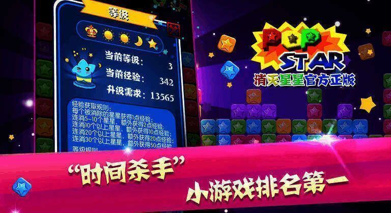 【拯救萌星】点击单个星星也能消除,采用小关卡设计,每个关卡有不同变量。每次消除后,星星自动由下向上上升一行,当星星上升至最顶端时游戏结束,增加了游戏的难度和趣味性。