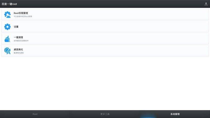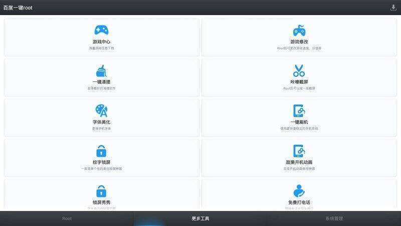 ROOT存在风险,请谨慎使用!百度一键ROOT支持6000多款机型,全面覆盖安卓2.2 - 4.4的主流机型,集成了几十套强力智能Root引擎。Root成功后,可获取最高权限,使用更自由,能进行系统精简、开机加速、内存管理、权限监控等操作,操作时请使用鼠标。