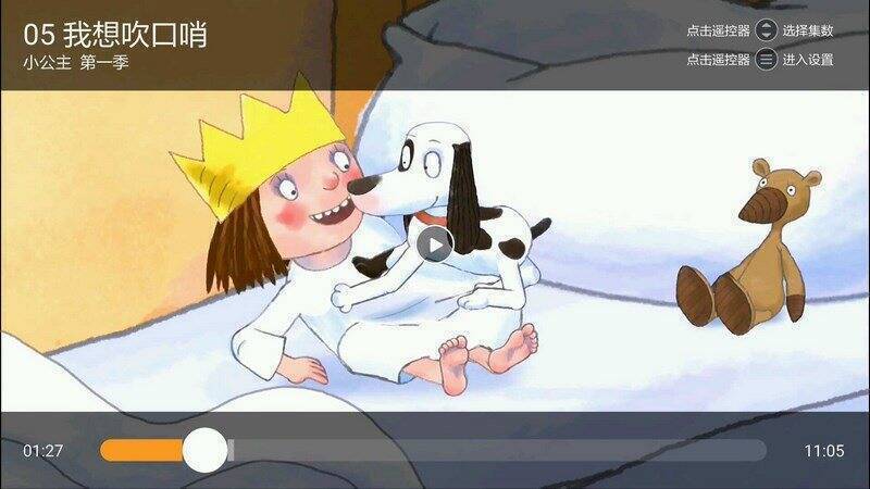 打开视频后,可按左右键快进和后退,按遥控器上键呼出选集栏直接选节目,下键能进行中英语音切换。