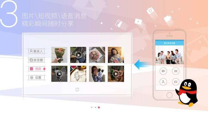 《亲友圈》是创维集团携手腾讯QQ物联精心打造的一款视频通话软件。它无需在手机端额外安装软件,只需用手机QQ扫描亲友圈二维码绑定智能电视机,就能与电视免费进行高清、流畅的视频通话。绑定成功后,QQ亲友间还能进行视频通话、发送图片和语音,畅享沟通乐趣。