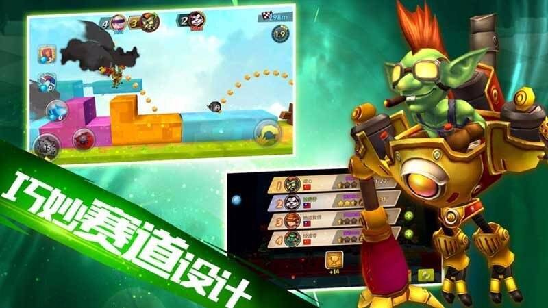 速配赛:以最快速度匹配4名在线玩家进行竞赛,玩家在克服地形障碍的同时,要捡到系统提供的各种随机道具,利用道具阻碍其他玩家或提升自己的速度来完成竞赛,第一名和第二名到达终点的玩家获胜。