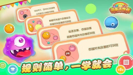 - 【简单快乐游戏玩法】:大萌菌吃小萌菌,小萌菌速度快,大萌菌速度慢,玩法轻松,上手容易。