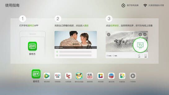 将小米投屏神器安装到手机后,确保手机和小米电视或小米盒子处于同一局域网且都已开机通电,此时右下角的电视图标会自动变为绿色,即表示连接成功。遥控器按钮在绿色电视图标的左边,视频、照片、应用等投屏操作直接点击相应选项即可。