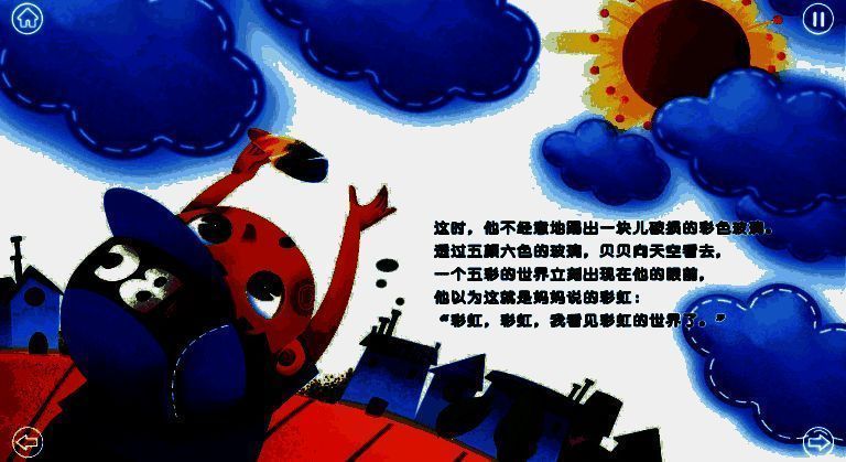 贝贝一直对彩虹满怀憧憬,却从未亲眼见过。某一天,他在广场上发现了一块破碎的彩色玻璃,当透过玻璃球望向天空时,一个五彩斑斓的彩虹世界呈现在眼前。贝贝看得入神,周围的人也受其感染纷纷抬头。那么,大家究竟看到了什么?之后又会发生怎样的趣事呢?