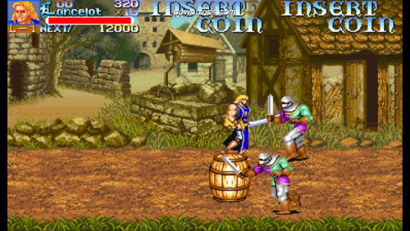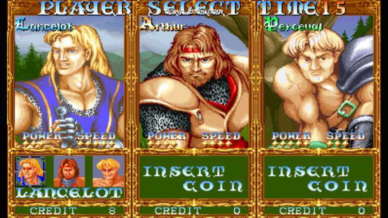 《圆桌骑士(Knights of the Round)》是一款动作街机游戏,以中世纪亚瑟王传说为背景,人物设定十分成功,给人留下深刻的中世纪印象。在系统方面,除了有坐骑和耗血绝招外,与其他作品差异较大。它没有摔投概念,或许是因为所有角色都使用剑器,为弥补攻击力下降,增加了重斩概念。防御概念的提出,使得防御运用是否得当成为通关关键。还有新创的升级概念,角色会根据经验升级,形象和威力都会改变,另外能将补血、奖分道具斩成几份的设定也独具匠心,从各方面看都很特别。