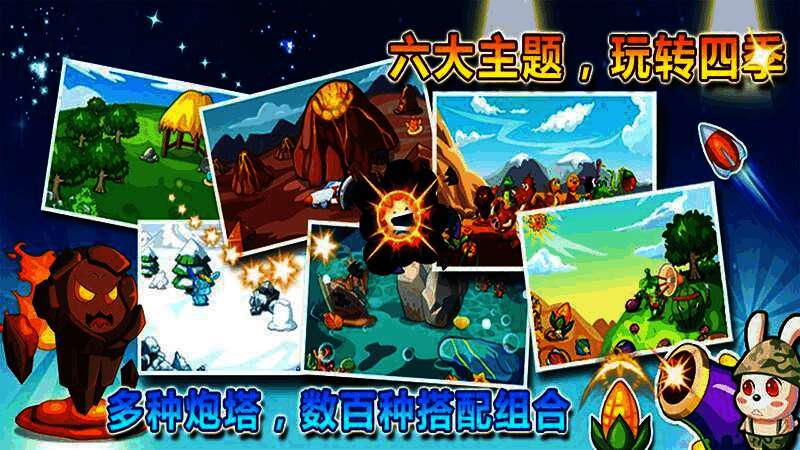 《守卫贼小兔TV版》是一款Q版卡通风格的关卡塔防手游,有多种炮塔可供搭配组合,玩法模式多样。