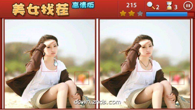 需在规定时间内找出两幅图片间的细微差别,才能解锁下一关。若点错,会扣除游戏时间,而且每次的不同之处都是随机改变的。