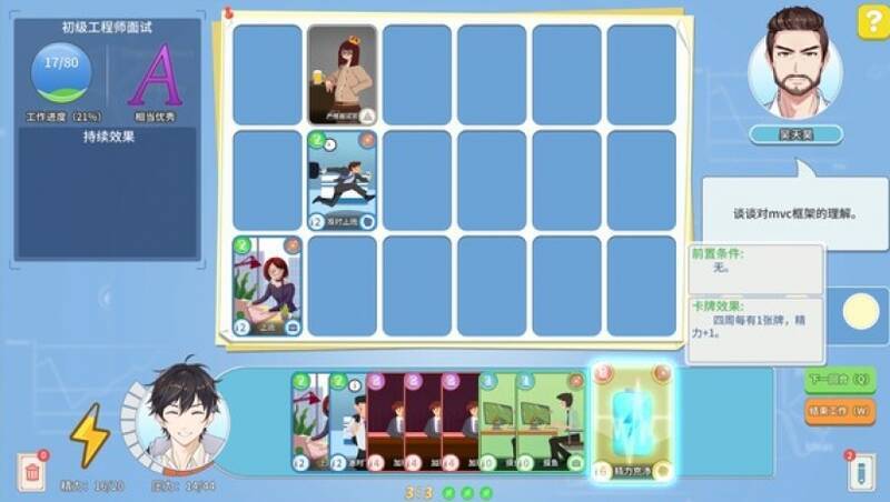游戏融入卡牌构筑式玩法,玩家可运用各种卡牌流派套路,应对职场中形形色色的工作挑战。