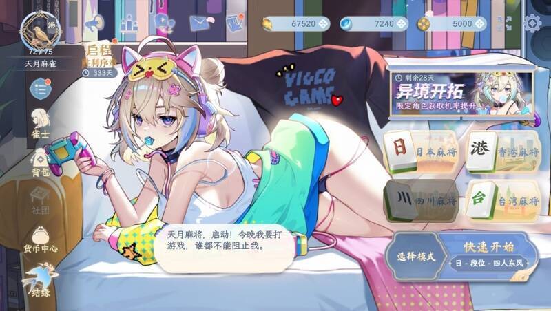 天月麻雀(Amatsuki Mahjong)中文版是一款二次元风格的麻将游戏,由香港团队CyberAlice精心开发,于2025年1月20日开启正式公测。此游戏融合了日本(立直)麻将、四川麻将、台湾麻将和香港麻将四种玩法,玩家能依据自身喜好挑选不同规则对局。游戏里所有角色皆以二次元风格呈现。