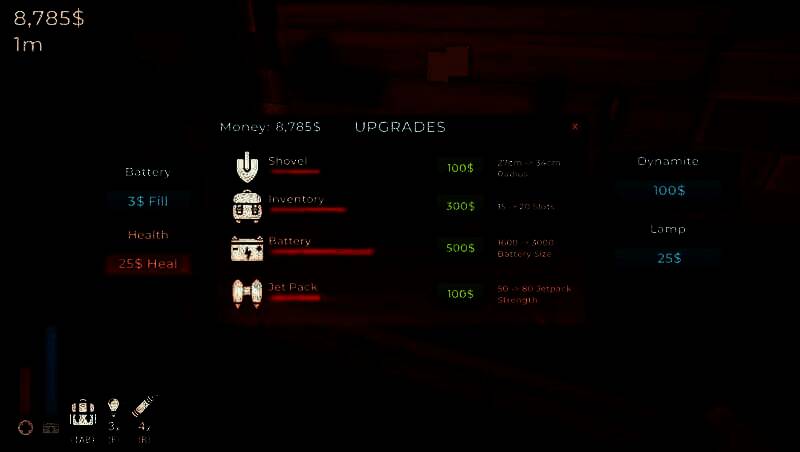 利用金币升级装备,提升采矿效率。随着游戏推进,能购买更高级的铁锹、探测器等装备。