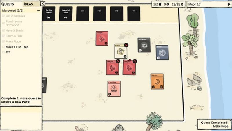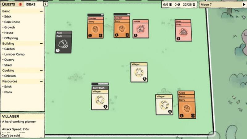 1、卡牌堆叠合成:游戏元素皆为卡牌,玩家将不同卡牌堆叠组合,像把“村民”放“树木”上得“木材”“树枝”,特定资源与“村民”组合能建“房屋”等。
