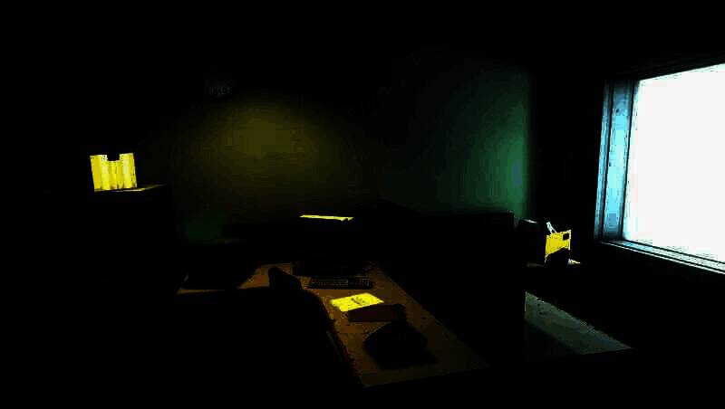 玩家以第一人称在充满神秘氛围的写字楼中活动,通过行走、开门、取放物品等基础操作与环境互动。