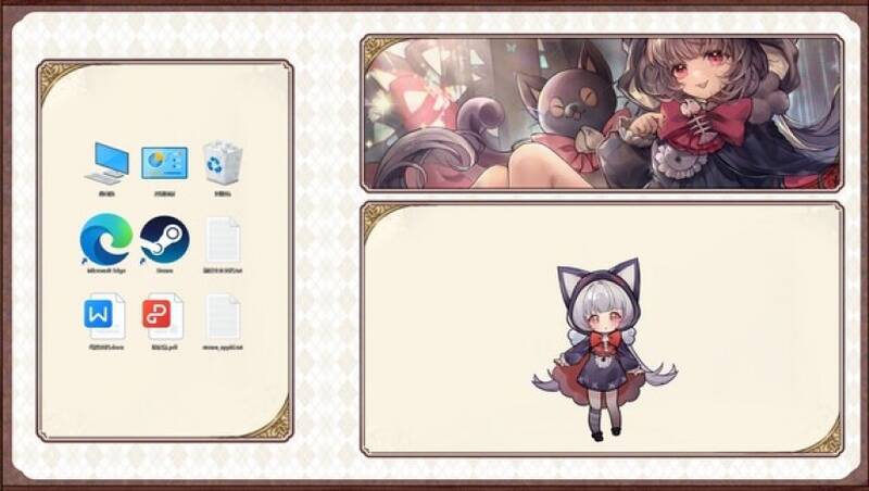 游戏采用日系萌系画风,角色设计融合猫耳元素与柔和的色彩搭配,动态效果细腻流畅,例如钓鱼时水波荡漾、战斗时的粒子特效等。场景设计以低饱和度的治愈系色调为主,搭配轻快的背景音乐与拟真音效(如翻书声、烹饪声),营造沉浸式氛围。通过Live2D技术实现角色面部表情与肢体动作的生动变化,支持4K分辨率适配,视觉表现力在同类桌宠游戏中处于领先水平。