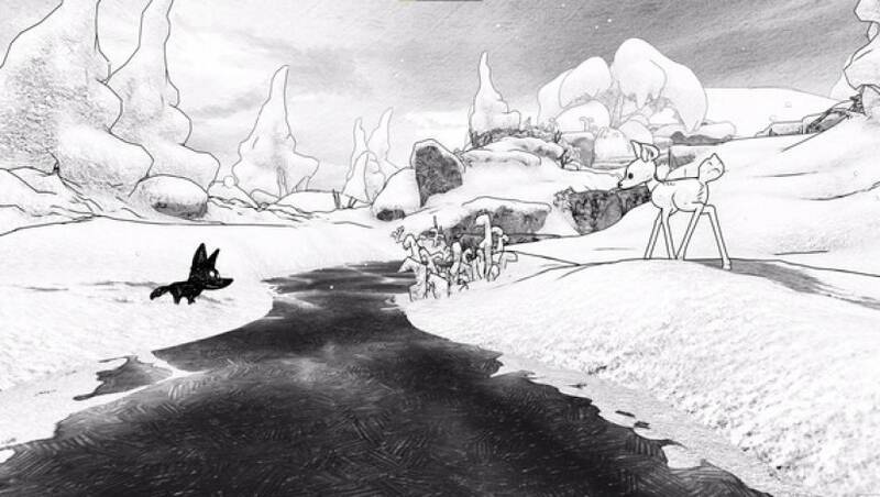 游戏采用纯手工绘制的2D纸面艺术风格,并巧妙融入3D世界,打造出独一无二的视觉效果。游戏中的每一片雪花、每一棵树木、每一座山峰,都像是精心绘制在纸上的艺术品。雪花飘落的轨迹、树木的纹理、山峰的轮廓,都展现出细腻的笔触和丰富的层次感。狼崽和幼鹿的形象也刻画得十分生动,它们的毛发、表情和动作,都充满了生命力。在阳光的照耀下,雪地上的反光效果真实自然,仿佛能让玩家感受到冰雪世界的寒冷与美丽。在一片宁静的雪谷中,阳光透过云层洒在雪地上,形成一片片金色的光斑,与洁白的雪地相互映衬,美不胜收。