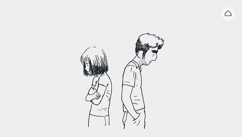 游戏以解谜推动剧情,比如拼合散落的对话框象征两人交谈。相识时碎片多且细碎,相爱时碎片减少,争吵时碎片边缘尖锐。